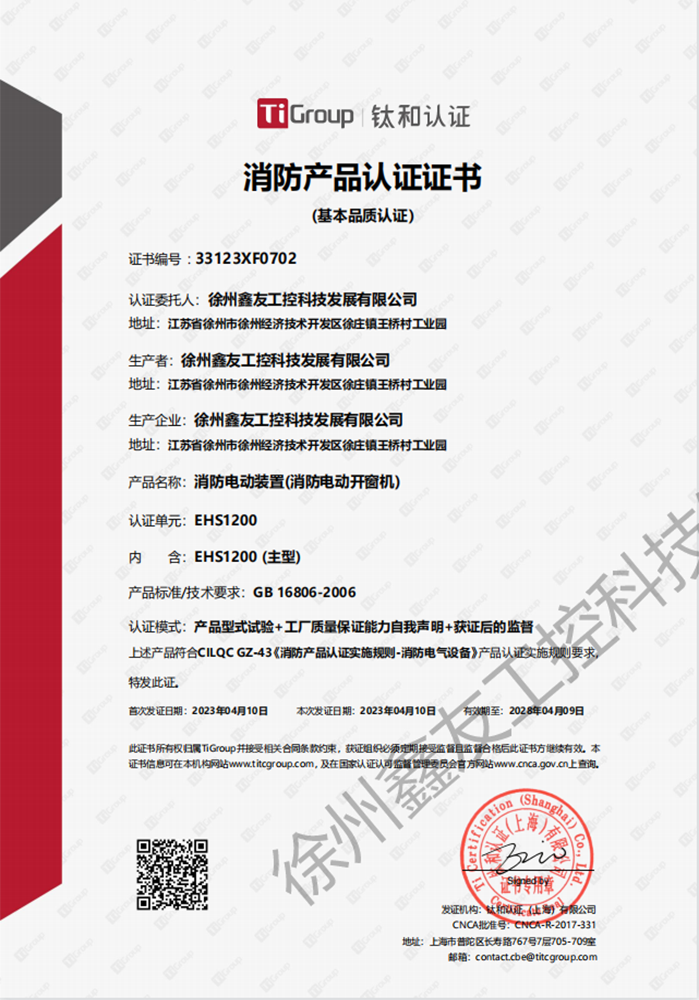 徐州鑫友工控科技發(fā)展有限公司成立于2008年,占地31600平方米,全資子公司:江蘇良紫工程科技有限公司,旗下 有“鑫友”及“MASTER.W主人窗控”兩個(gè)品牌系列,公司全面貫徹執(zhí)行IS09001:2015質(zhì)量管理體系標(biāo)準(zhǔn),產(chǎn)品順利通過(guò)歐盟CE認(rèn)證和中國(guó)***消防電子產(chǎn)品認(rèn)證,通過(guò)可燃性粉塵環(huán)境下、爆炸性環(huán)境下防爆合格產(chǎn)品檢驗(yàn)。排煙天窗整窗通過(guò)***消防產(chǎn)品質(zhì)量監(jiān)督檢驗(yàn)中心檢測(cè)。先后獲得多項(xiàng)******及榮譽(yù)證書(shū)。集研發(fā)、加工、生產(chǎn)、制造、銷(xiāo)售、安裝及售后于一體,是一家高起點(diǎn)、研發(fā)能力強(qiáng)的專(zhuān)業(yè)智能化企業(yè)。