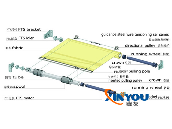 電動(dòng)遮陽百葉FTS電動(dòng)天棚簾產(chǎn)品結(jié)構(gòu)示意圖