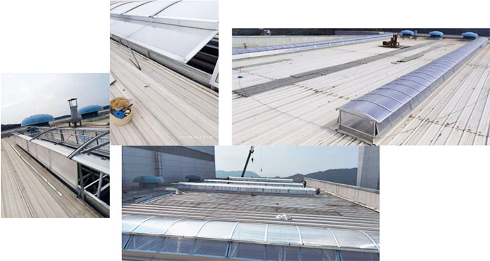 3.全結(jié)構(gòu)防水技術(shù)在圓拱型電動采光排煙天窗中得到了全方位應(yīng)用,解決了傳統(tǒng)硅膠易老化、開裂的的漏水隱患問題。