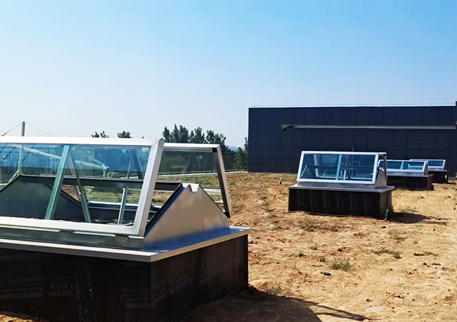天窗外觀為三角形,天窗頂部可采用采光板或玻璃,有效增加室內采光,且防水性好。開啟電機設計成24V安全電壓,可連接消防聯動控制系統及風、雨、煙感應器。***開啟角度為60°。