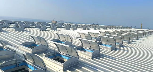 圓拱形的設(shè)計(jì),外觀優(yōu)美、通風(fēng)排煙兼顧自然采光,開(kāi)啟角度一般為30度到45度***開(kāi)啟角度為90°。