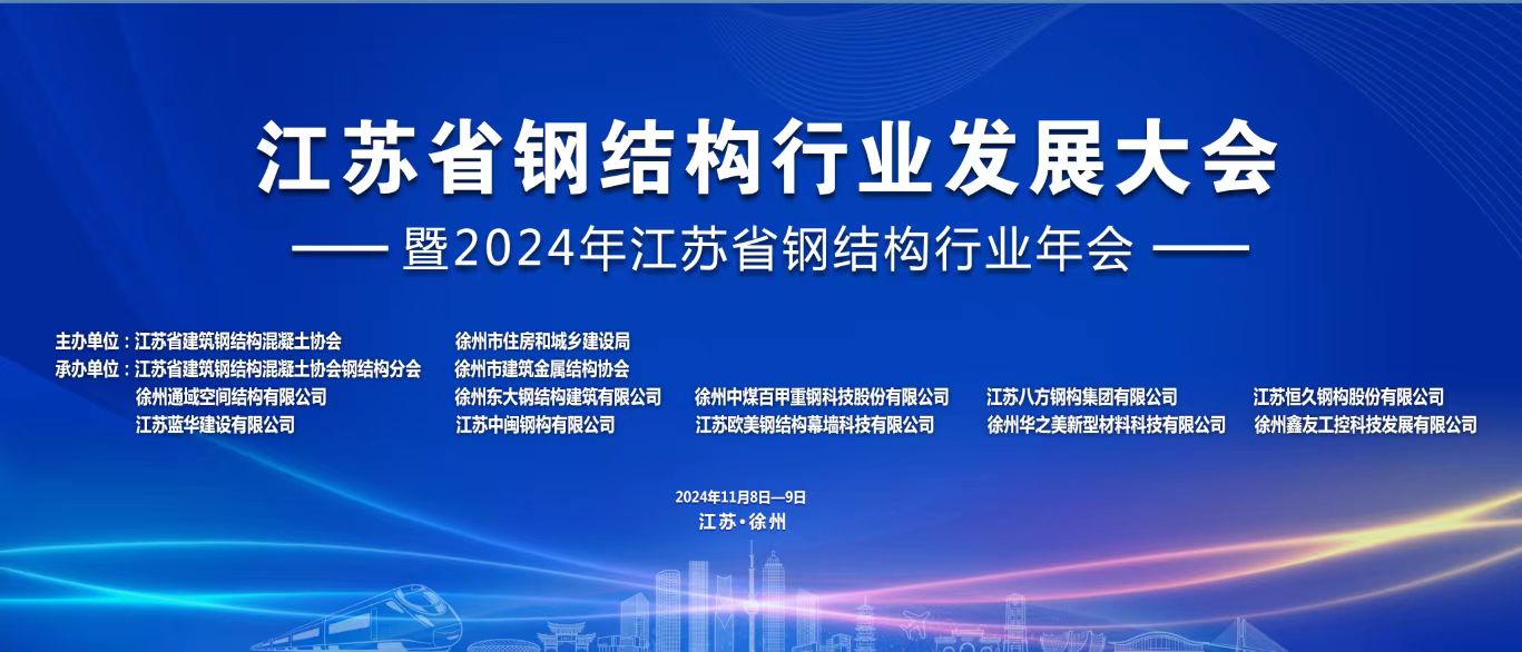 根據江蘇省建筑鋼結構混凝土協會章程和年度工作安排,由江蘇省建筑鋼結構混凝土協會、徐州市住房和城鄉建設局聯合主辦,我公司及江蘇省建筑鋼結構混凝土協會鋼結構分會、徐州市建筑金屬結構協會、徐州通域空間結構有限公司、江蘇藍華建設有限公司、徐州東大鋼結構建筑有限公司、江蘇中閩鋼構有限公司、徐州中煤百甲重鋼科技股份有限公司、江蘇八方鋼構集團有限公司、江蘇恒久鋼構股份有限公司、江蘇歐美鋼結構幕墻科技有限公司、徐州華之美新型材料科技有限公司聯合承辦的“江蘇省鋼結構行業發展大會暨2024年江蘇省鋼結構行業年會”定于2024年11月9日在徐州開元名都大酒店召開。