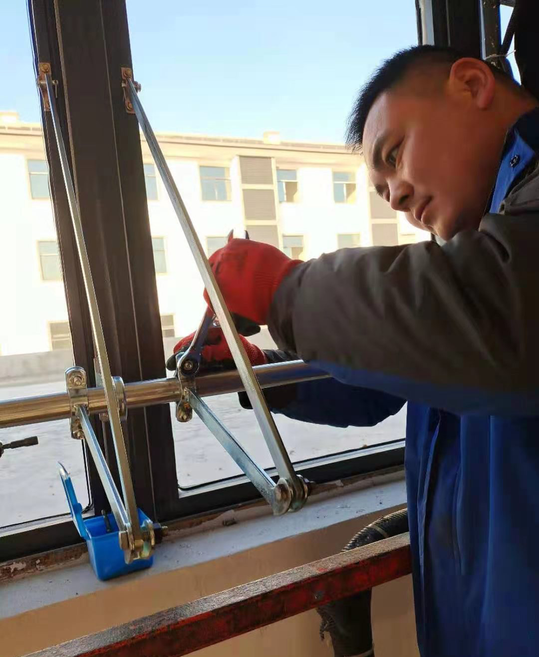 此次電動(dòng)排煙窗工程采用曲臂聯(lián)動(dòng)電動(dòng)開(kāi)窗器,由螺桿式電動(dòng)開(kāi)窗器驅(qū)動(dòng)。
