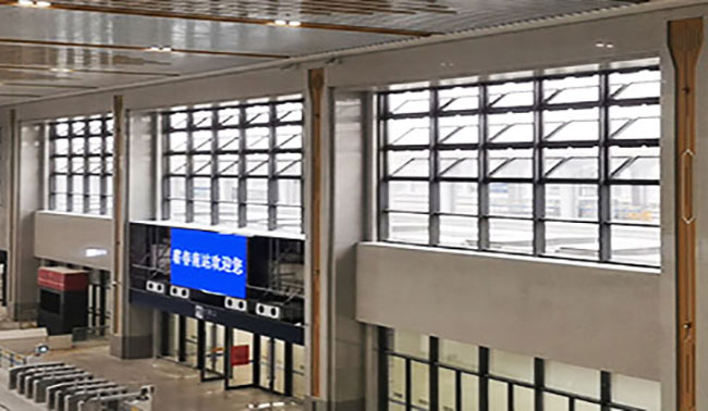 鑫友現承建的是黃黃高速鐵路蘄春南站、浠水南站兩個站的電動排煙窗工程,配備單鏈開窗機、消防聯動控制箱。蘄春南站電動排煙窗于今日公司自檢調試全部正常開啟。浠水南站也正在進行***的掃尾工作。