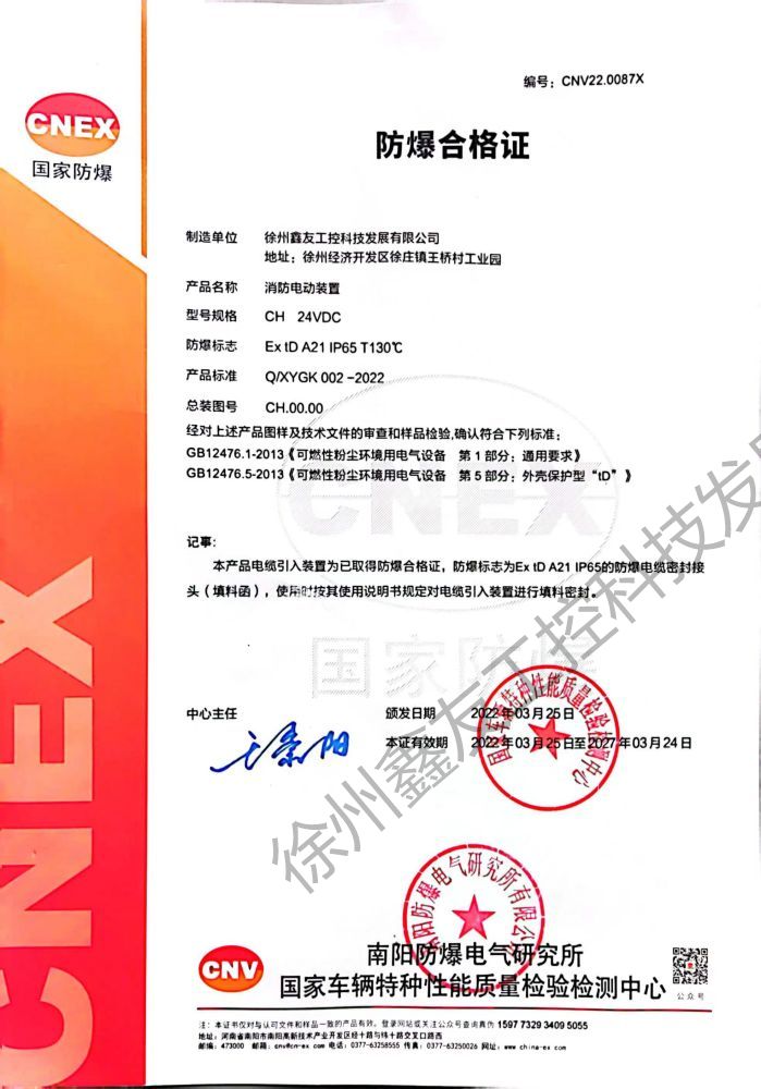 電動(dòng)鏈?zhǔn)介_窗機(jī)防爆合格證書