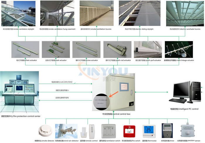 主要適用于公寓,別墅和一些中小型的公共設施。能實現一個智能控制箱區域內的總控、分組控制、單控和遙控功能,每個智能控制箱***多可接50個開窗器。