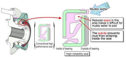 鑒于這些實(shí)際情況,NSK開(kāi)發(fā)了一種具有高可靠性密封的輪轂軸承單元,該軸承在最具挑戰(zhàn)性的環(huán)境下抑制摩擦,提高耐泥水性,使用與其傳統(tǒng)產(chǎn)品相同尺寸的密封,實(shí)現(xiàn)了卓越的可靠性。
