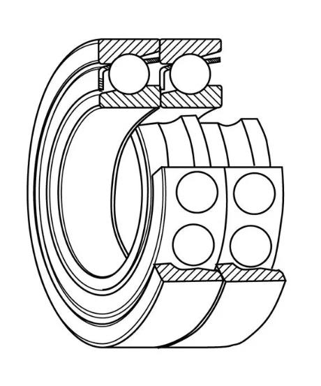 雙聯(lián)軸承是具有“內(nèi)置”預(yù)緊力的配對(duì)軸承,內(nèi)圈或外圈表面已經(jīng)研磨到一個(gè)被稱為“預(yù)緊偏移”的精確尺寸,當(dāng)施加特定的軸向預(yù)緊時(shí),該偏移對(duì)應(yīng)于套圈的軸向移動(dòng),當(dāng)軸承在裝配時(shí)被夾緊在一起時(shí),偏置面鄰接,從而在軸承組中建立永久的剛性預(yù)緊。
