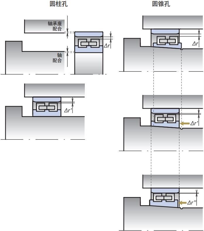 根據(jù)軸和軸承座的配合,徑向游隙從Δr - Δr'變化,不能進一步調(diào)整徑向游隙。